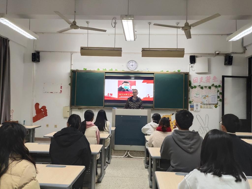 同学们在进行签到后,由胡济林老师进行“解读习近平主席新年贺词”的专题报告,胡济林老师先向同学们介绍了国家领导人在元旦即将到来之际发表新年贺词的传统,接着为我们解读了2021年新年前夕国家主席习近平发表的新年贺词,重点讲述了疫情防控和脱贫攻坚取得决定性胜利等内容,并与同学们一起回顾了深圳等经济特区建立40周年和上海浦东开发开放30周年的发展成就,让同学们感悟到中国共产党全心全意为人民服务的根本宗旨,感受到党坚强有力的领导,在党的领导下,全国人民团结拼搏,奋勇直前,一定能够实现中华民族伟大复兴。