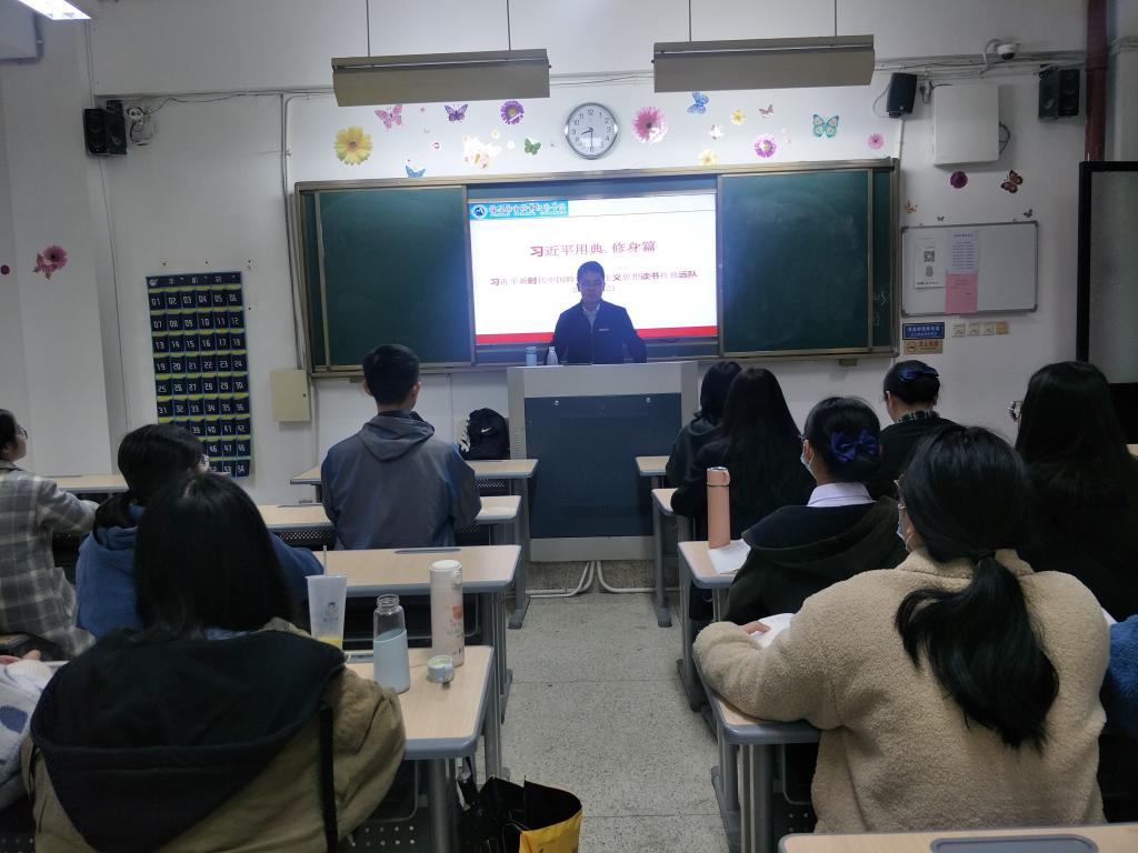 2021年3月23日晚上,习近平新时代中国特色社会主义思想读书社致远队在教学楼204开展《习近平用典》之“修身篇”学习。全体选课同学按时参加了学习。