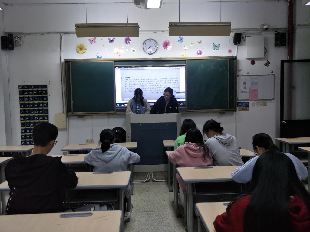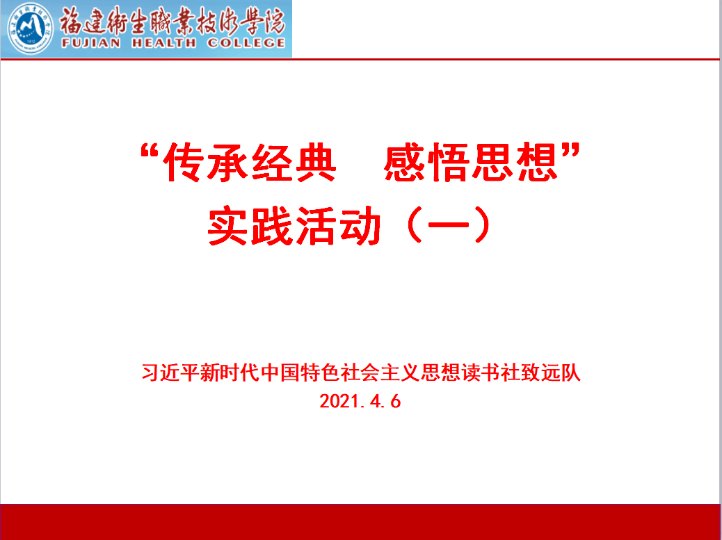 2021年4月6日,习近平新时代中国特色社会主义思想读书社致远队在教学楼204开展“传承经典感悟思想”课堂实践活动。活动由社团指导老师江洪老师主持,全体选课学生参加了活动。