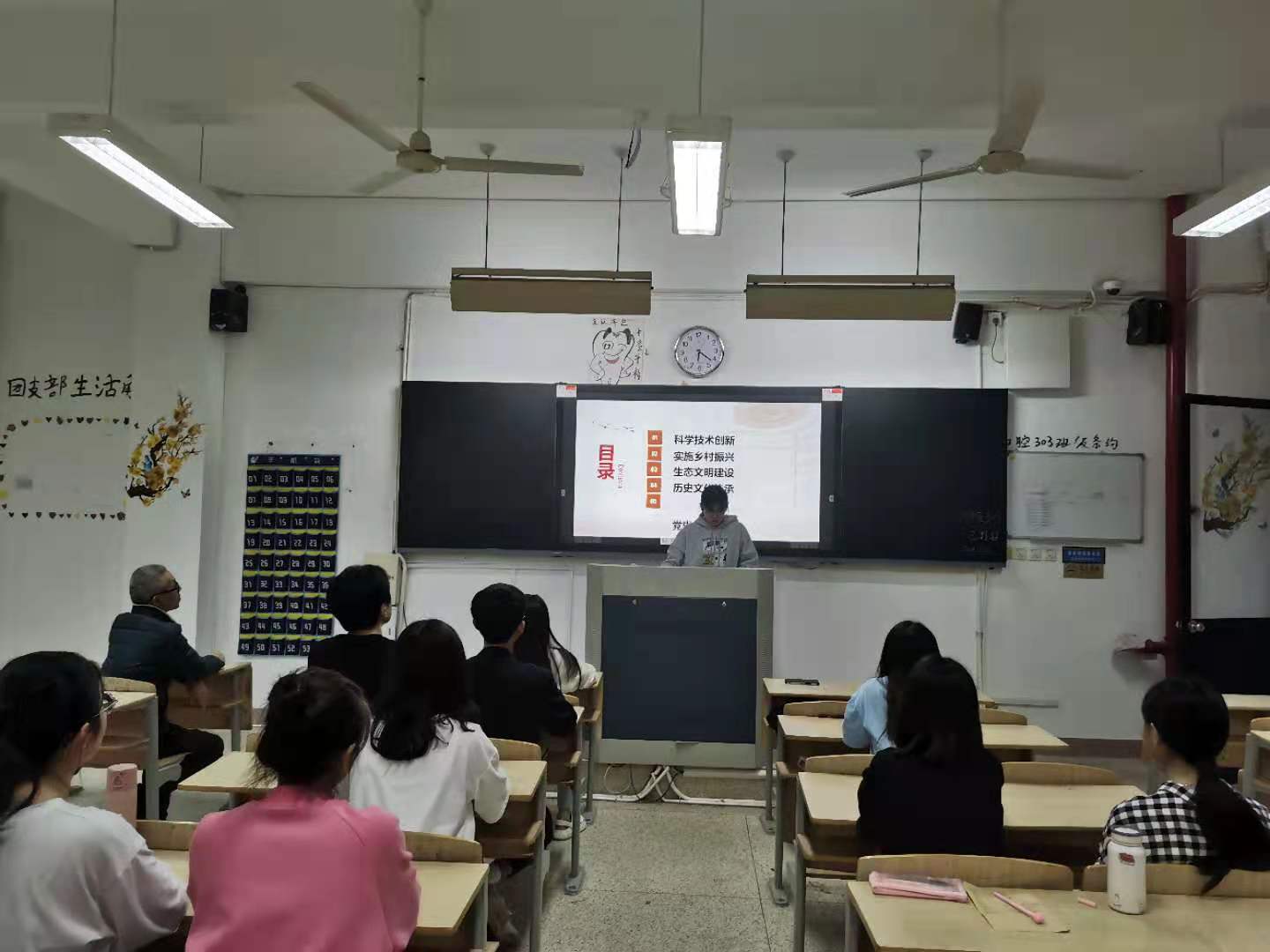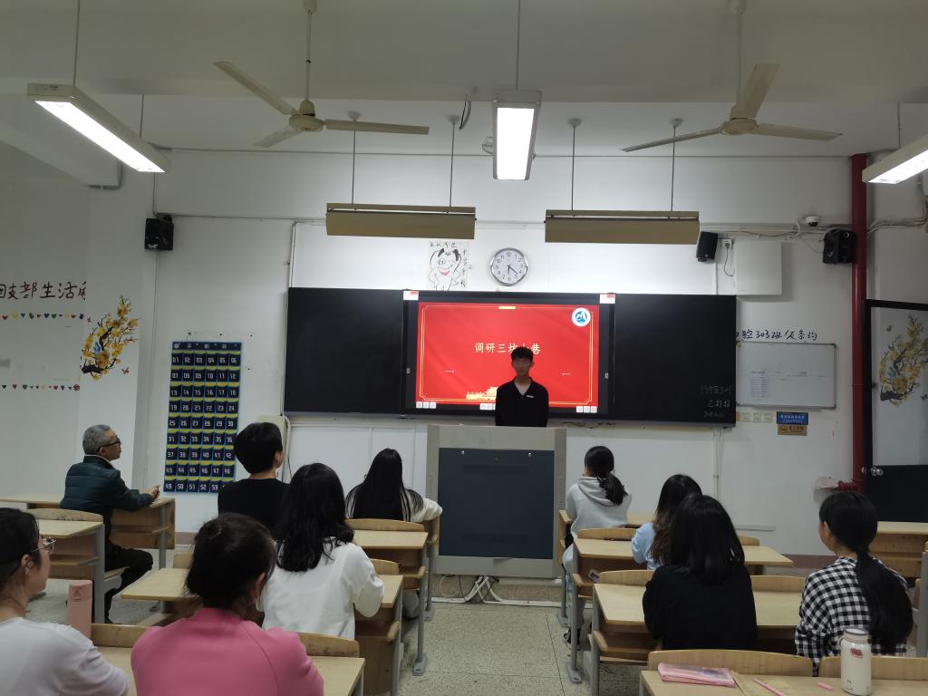 报告结束后,由周思佳、黄先威、吴蕾三位同学分别进行《学习习近平总书记来闽江学院的讲话精神》、《调研三坊七巷》、《访八闽绘改革》的分享与交流,他们分别从闽江学院的发展变化、三坊七巷的变化、八闽的改革等方面全面展现了习近平总书记对八闽建设的实践性推动,对高质量教育体系的建设性推动,对历史文化传承的保护性推动。三位同学制作的课件精美,内容丰富,侧重点不同,讲解语言连贯,得到同学与老师的一致好评。课件展示结束后,同学们进行本次学习的交流与心得分享。