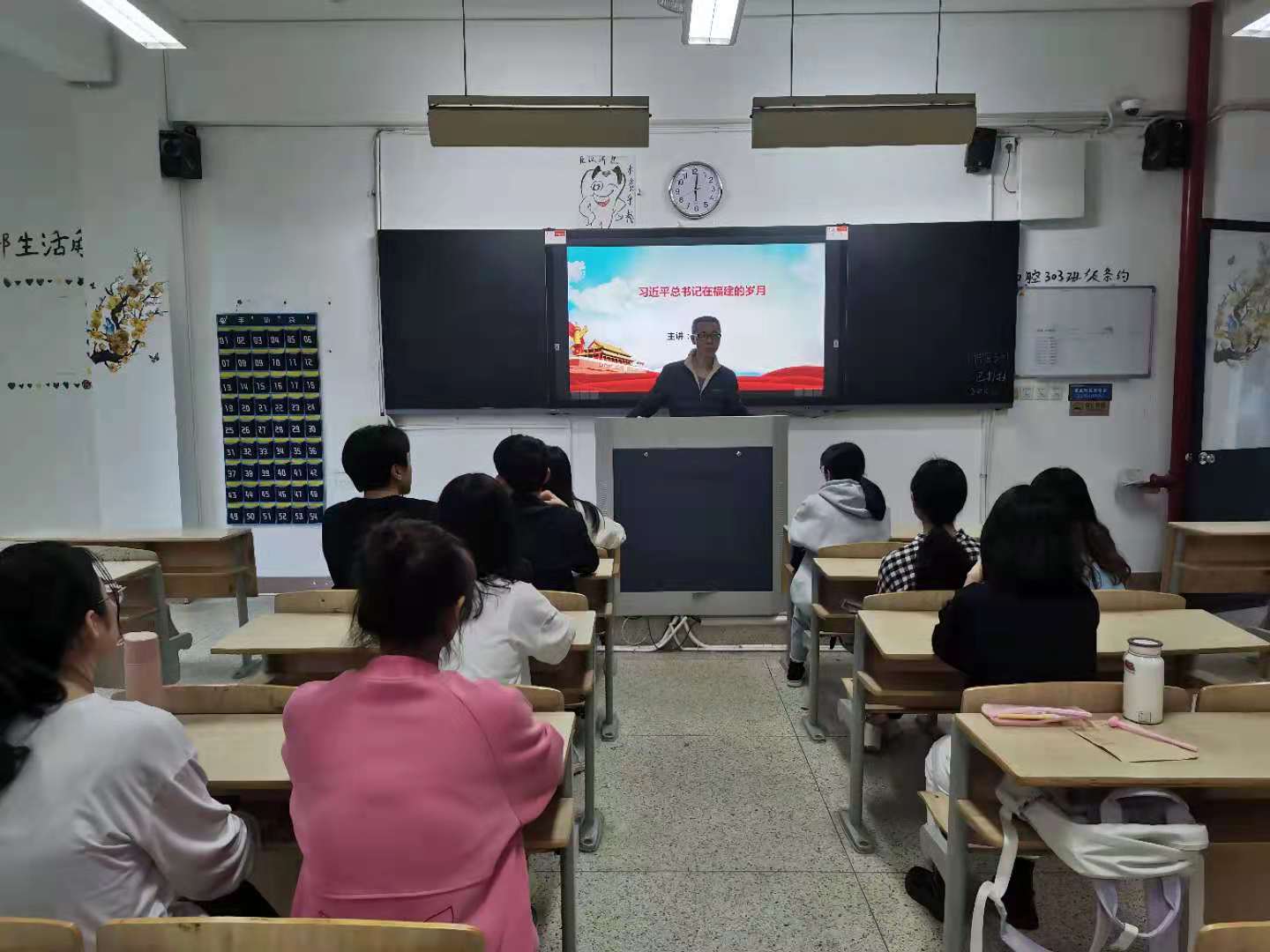 胡济林作了《习近平总书记在福建的岁月》的专题报告,先后解读习近平总书记在福建工作17年期间的重要执政理念及近期习近平总书记再次考察福建的重要讲话精神,生动讲述了习近平总书记在福建这片充满热情的土地上,带领各级干部群众,在科学技术、经济发展、人才培养、脱贫攻坚、生态文明、党的建设等各大领域,取得了极其丰硕的成果,建设形成“机制活、产业优、百姓富、生态美”的新福建。胡济林号召同学们要汲取习近平总书记在闽工作期间的精神力量,用自己的实际行动去展现八闽新风貌。