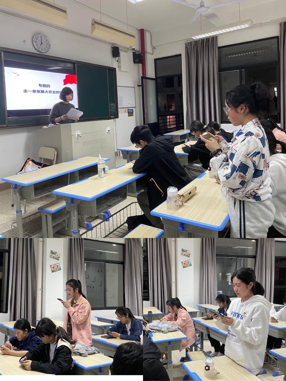 课前,郑冰上传材料让同学们预习,使同学们对这次的专题内容熟悉,并产生兴趣。课上,郑冰请几位同学代表朗诵文章,郑冰就此次主题内容,深入浅出地分析了什么是大农业,与传统的农业有什么区别,以及习近平总书记在福建工作期间对宁德地区发展大农业的几点思考。让同学们更加深刻认识到什么是大农业,以及宁德地区为什么要从小农业向大农业的发展模式进行转变及如何改变旧农业格局。