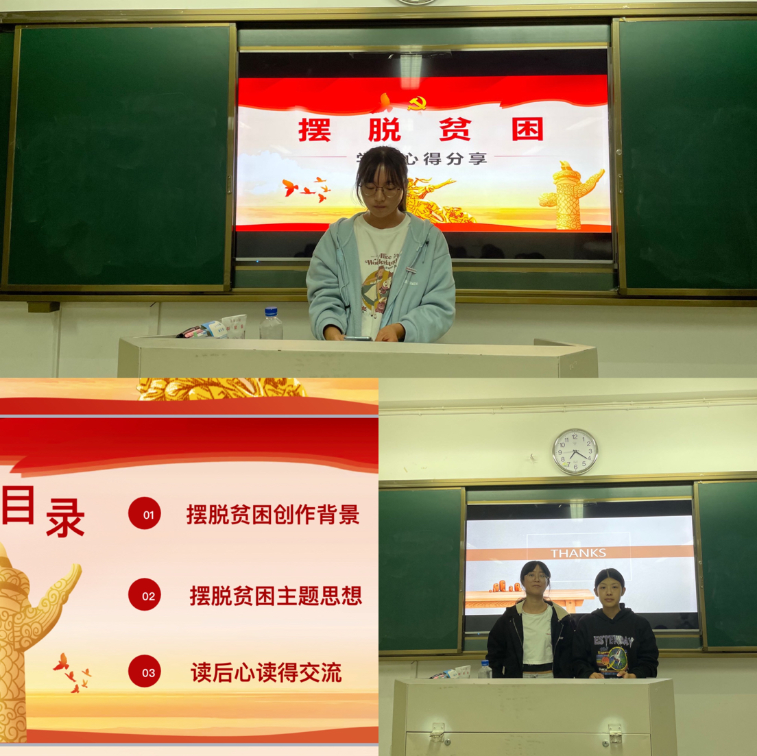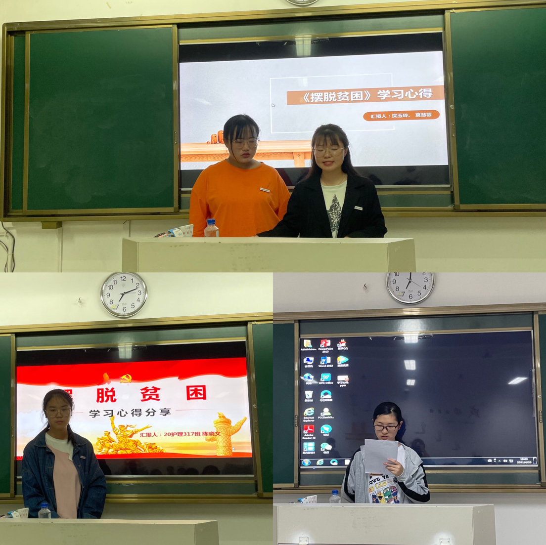 2021年4月20日晚,习近平新时代中国特色社会主义思想读书社梦之队在教学楼304开展了本学期的最后一次选修课,此次课依然由梦之队指导老师郑冰主持,由全体社团成员分享大家学习《摆脱贫困》的心得体会。