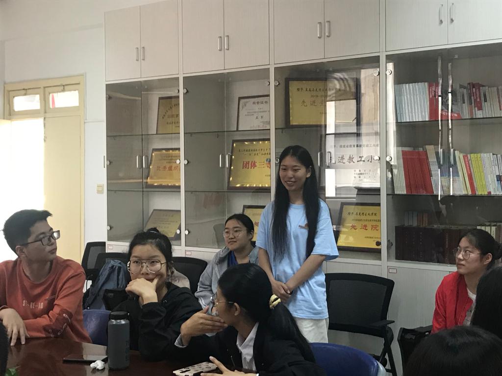 次日,干事候选人在行政楼107会议室进行面试。面试分为三部分,第一部分是干事们各抒己见,提出疑虑,进行提问,对未来工作规划。第二部分依次发言由指导老师提问,他们侃侃而谈,对答如流,表现出他们饱满的热情和积极的心态。第三部分指导老师与19级干事们进行最终商议,确定20级干事名单。