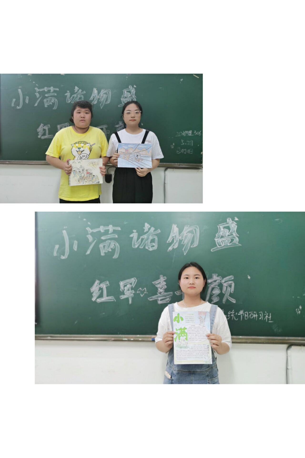 百年征程波澜壮阔,百年初心历久弥新。为庆祝中国共产党建党100周年,在小满之际,纪念红军长征精神和弘扬中国传统文化。让同学们了解红军长征途中的艰苦奋斗,学会节约粮食的中华传统美德。同时能够让同学们回顾历史,学习艰苦奋斗的长征精神,增进学生爱国主义精神。2021年5月27日晚上,传统节日研习社在教112开展了主题为“小满诸满物,红军喜开颜”的庆祝“小满”活动。