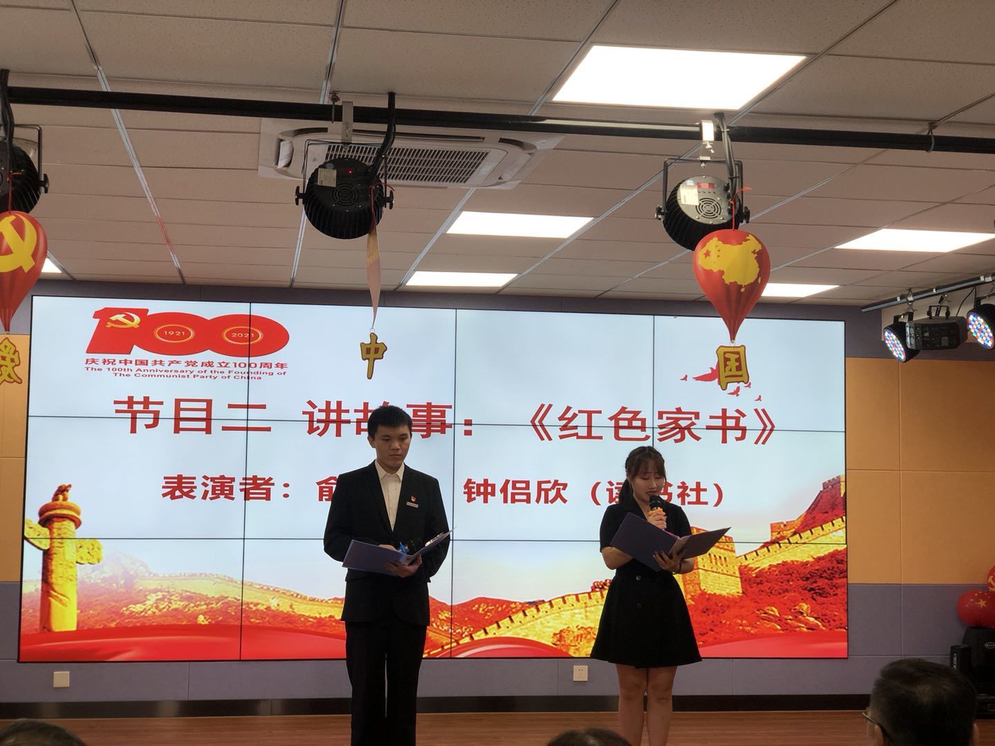 俞君泽和钟侣欣同学为大家带来的是一封红色家书,她们声情并茂,极富表现力,把赵一曼同志深厚的爱国主义、崇高的民族气节、对共产主义事业忠贞不渝的革命精神,展现得淋漓尽致。同学们聚精会神的听着,仿佛自己就置身于那个战火纷飞的年代。“烽火连三月,家书抵万金”,红色家书是老一辈革命家留给后人无比珍贵的精神财富,它们并没有被历史长河所湮没。