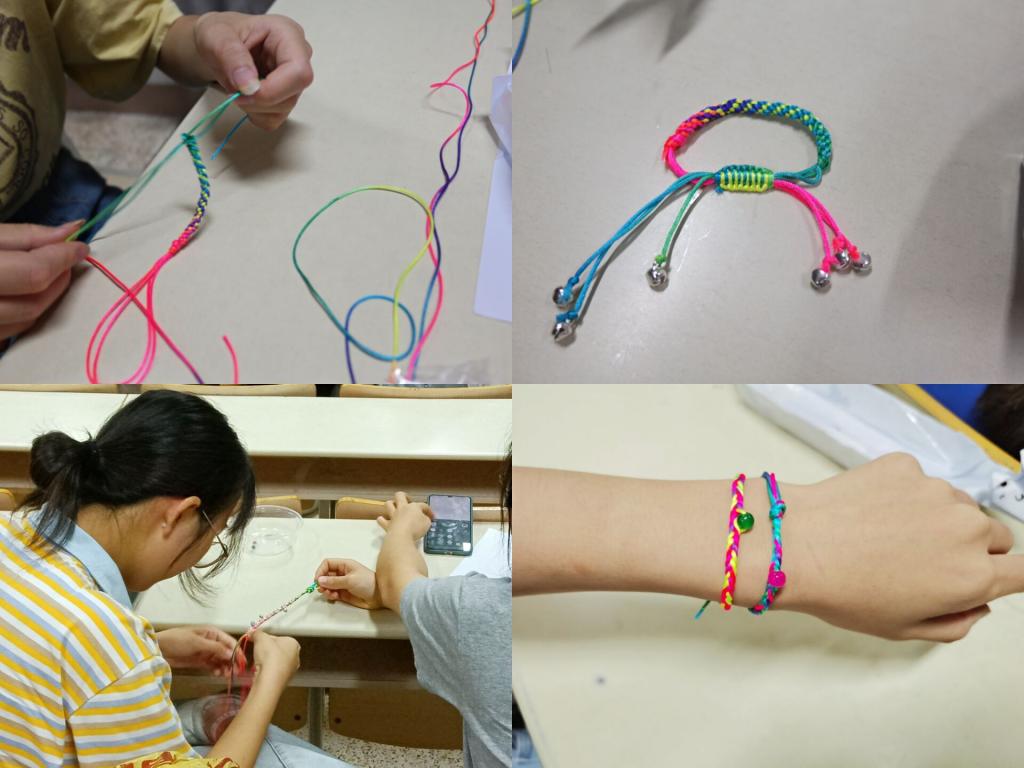 一番激烈的吹龙舟比赛结束后,成员们发挥聪明才智,用她们灵巧的双手编织五彩绳。由社团干事组成的评委团为大家劳动所编织的五彩绳进行评分,并逐一为获奖的选手颁奖,分发奖品。