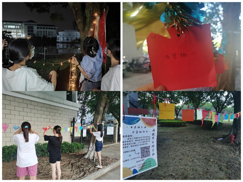 本次活动,为避免人员聚集,由工作人员提前布置现场,且分时间在规定地点设置谜题,活动人员在规定时间内将猜出的灯谜取下,将谜题和谜底拍照发送到活动QQ群,工作人员核对答案。活动结束后,工作人员统计并核对答对数量,联系获奖人员拿取奖品。