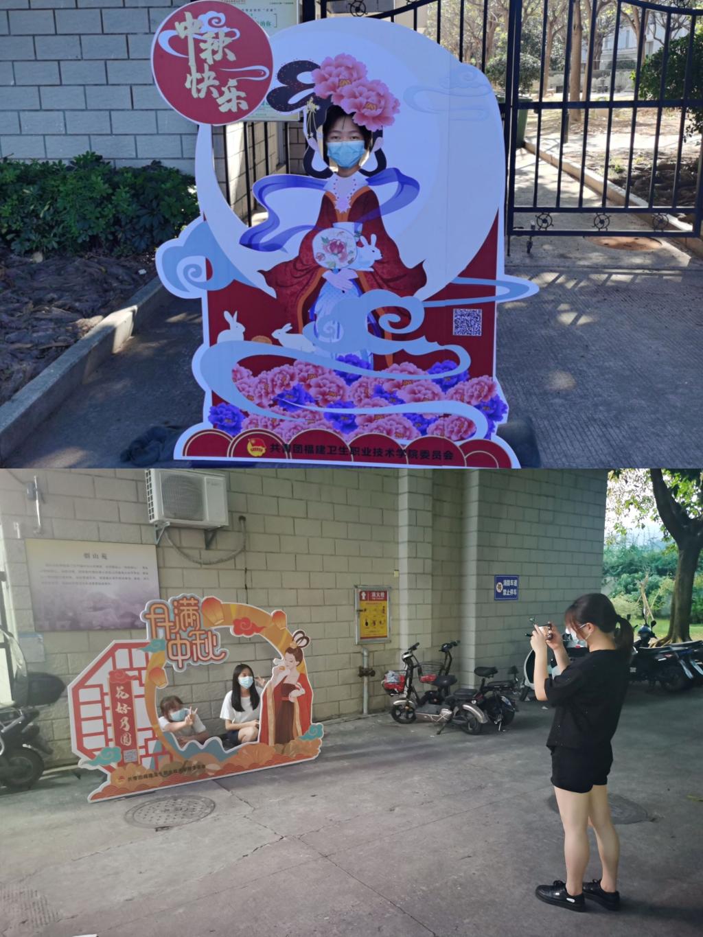 同时为增加中秋氛围特设人形立牌处供大家拍照打卡。