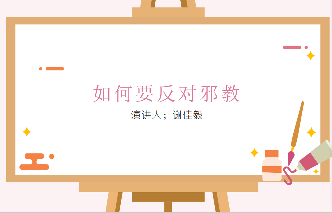 报告结束后,牛莉、谢佳毅两位同学分别进行“反邪教”、“如何反对邪教”的分享与交流。他们从多方面、多层次深入讲述了邪教的种类、组织结构、活动形式等,还举例了各种案例与面对邪教的措施,进一步加深了同学们对邪教的认识,让我们受益匪浅。两位同学制作的课件精美,内容丰富,侧重点不同,讲解语言连贯,条理清晰,得到老师和同学的一致好评。课件展示结束后,同学们还分享了本次学习的心得体会。