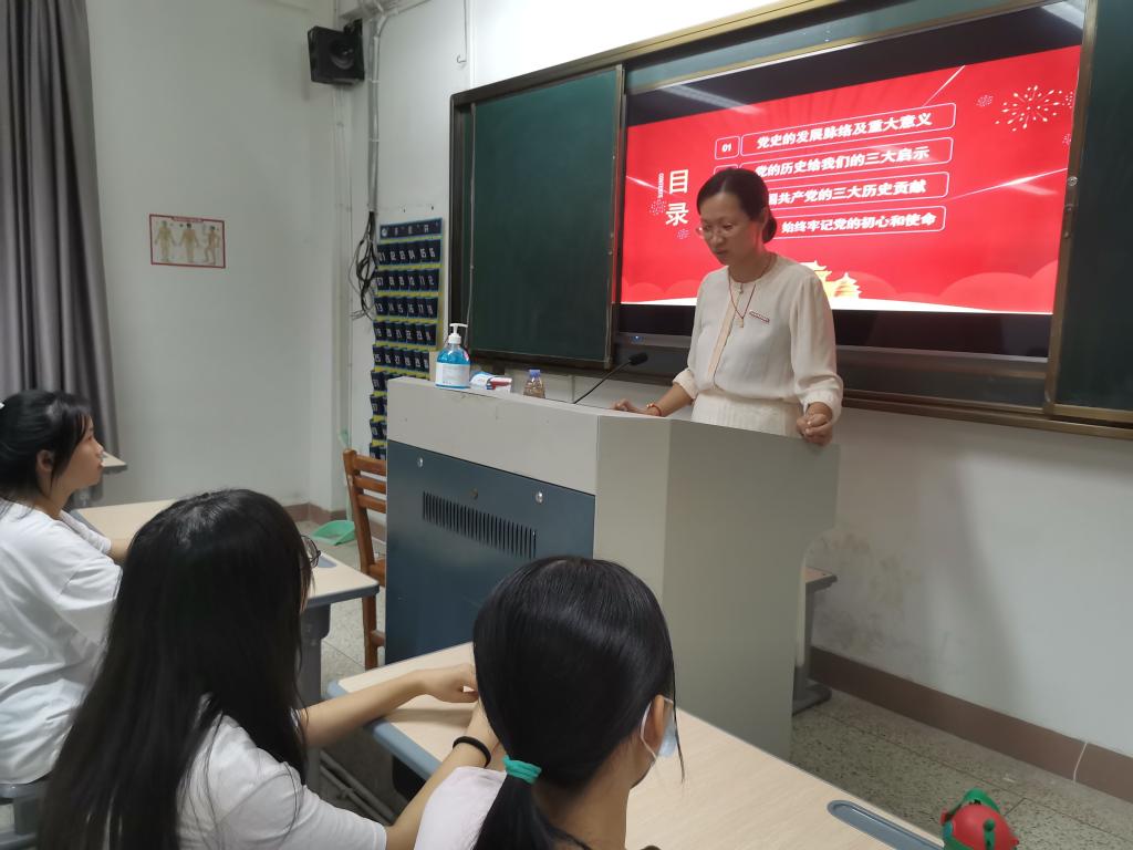 陈洪月从中国共产党党史的发展脉络、中国共产党的历史给予的三大启示、中国共产党的三大历史贡献及其战疫情、始终牢记党的初心和使命等四个方面引导学生必须做到毫不动摇坚持党对一切工作的领导,加强和完善党的领导,强化“两个维护”的高度自觉,将中国特色社会主义推向前进。