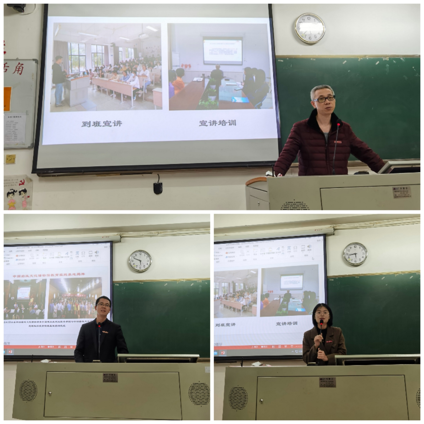 陈琳琳首先对社团、各分队、指导老师以及社团品牌活动进行简单的介绍。副社长刘霏霏、陈家惠分别对宣讲团和讲解队进行介绍并发出招新邀请。