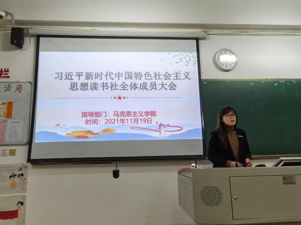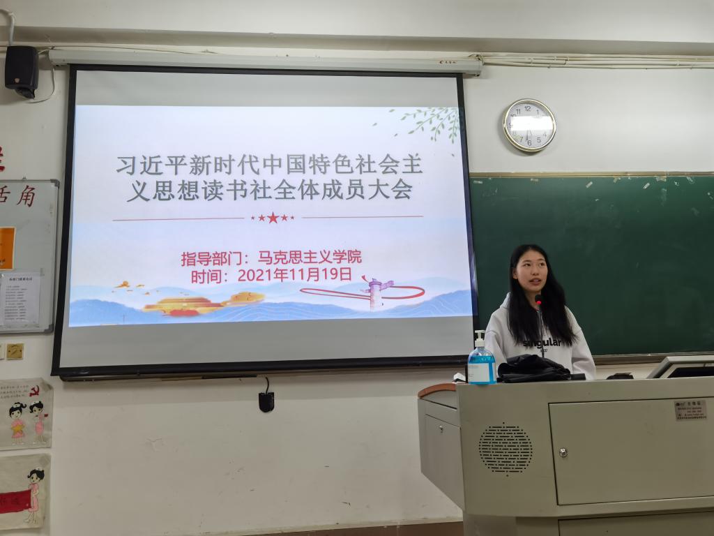 2021年11月19日下午,习近平新时代中国特色社会主义思想读书社在教114举行新生见面会,熊美兰、胡济林、江洪、郑冰、罗芸等指导老师以及全体社员参加本次见面会,见面会由社长陈琳琳主持。