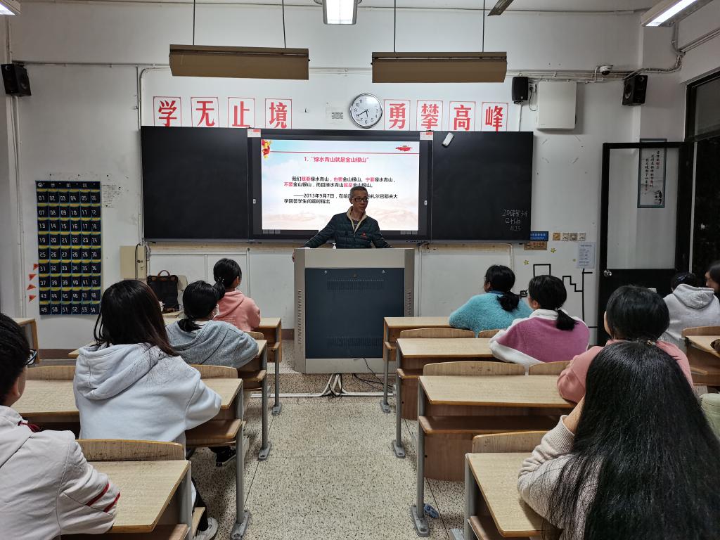 “绿水青山就是金山银山”“要像保护眼睛一样保护生态环境”“良好生态环境是最普惠的民生福祉”“生态环境保护是功在当代利在千秋的事业”等,习近平总书记的精辟论述给同学们留下深刻的印象。在胡济林的报告结束后,同学们进行本次学习的交流与心得分享,同学们表示要加强生态文明宣传教育,推动全民共同实施生态文明建设,把生态文明摆在首要地位,同时也要在日常学习生活中贯彻尊重自然、保护自然、顺应自然的生态理念。胡济林号召同学们自觉行动起来,更加珍爱自然,为保护生态环境作出我们这代人的努力。