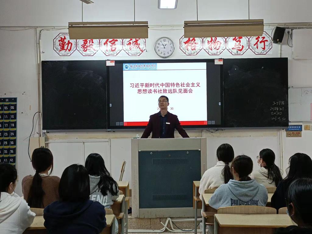 2021年11月30日中午,我校习近平新时代中国特色社会主义思想读书社“致远队”在教学楼103教室举行新成员见面会。此次会议由社团指导老师江洪主持,读书社“致远队”和福州马江海战志愿讲解队的全体成员参加了会议。