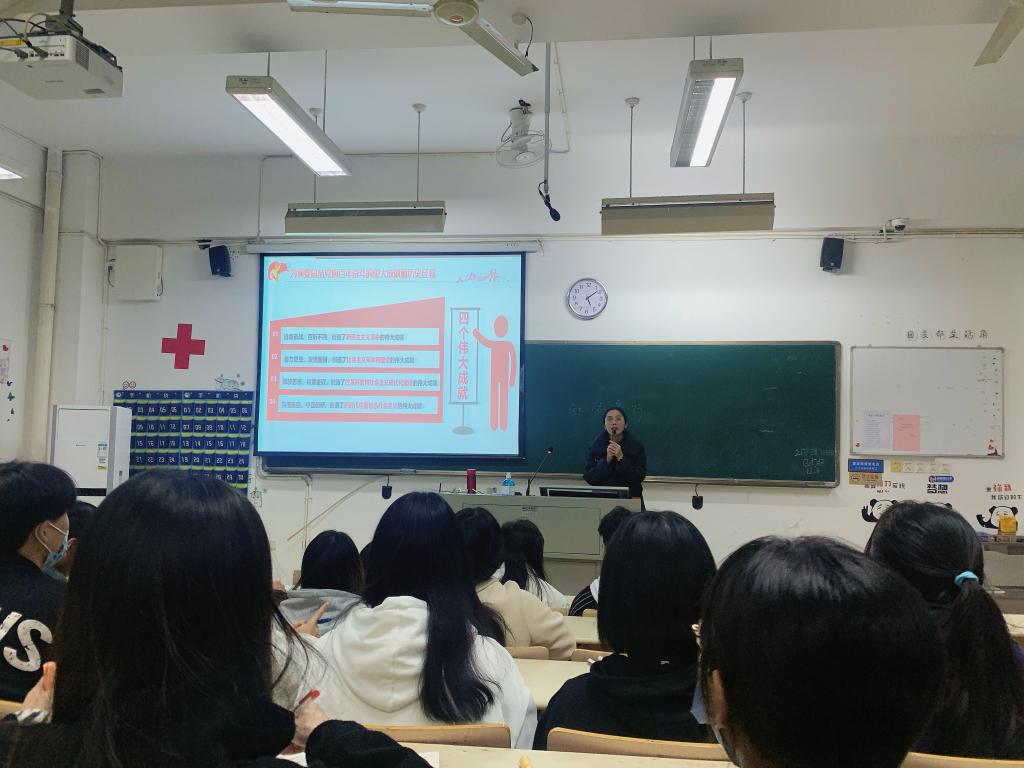 宣讲主要围绕党的百年奋斗的辉煌成就和历史经验对党的十九届六中全会精神作了解读,强调从“开天辟地”的浴血奋战、百折不挠,到“改天换地”的自力更生、发愤图强,到“翻天覆地”的解放思想、锐意进取,再到“惊天动地”的自信自强、守正创新,党的领导始终是党和国家的根本所在、命脉所在,并鼓励同学们要深入学习贯彻党的十九届六中全会精神,深刻把握党的百年奋斗重大成就和历史经验,在历史中汲取智慧和力量,在学习中坚定信仰和信念,在奋进中牢记初心和使命,争当新时代有作为的大学生。