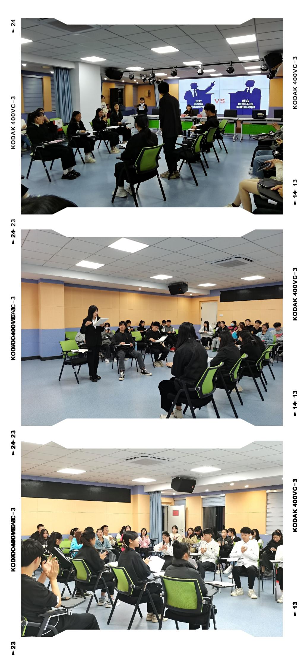 现如今“一二·九”运动时事热点辩论赛已走过十三个春秋,早已成为时代先锋协会的品牌特色活动项目之一。此次比赛中,经过初赛的激烈角逐,共有4支队伍脱颖而出,进入总决赛。本届大赛的辩题为“医学发展应不应该有伦理界限”。第一场比赛中,正方指出,不仅在医学发展的内容和方向上,在研究手段和措施上,都应该有伦理界限,这样才更有利于维护社会的稳定。反方则认为伦理具有不确定性,而前沿医学具有时代前瞻性,用伦理限制医学是非常不利于医学发展的。第二场比赛更是将气氛推向了高潮,自由辩论阶段双方更是围绕着“伦理和法律的关系”“伦理的产生”等问题展开了激烈的对辩。正方认为医学发展需要受到法律和伦理的限制,否则医学将没有底线。反方则反驳道:医学发展需要受到法律的限制,而在法律之外的伦理可以被突破。双方你来我往,唇枪舌战,互不相让,思维灵活,逻辑清晰,同时引经据典,利用客观的数据及典型案例进一步证明己方观点,赢得阵阵掌声。