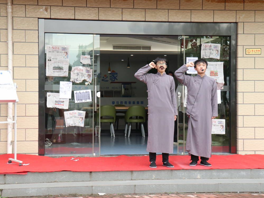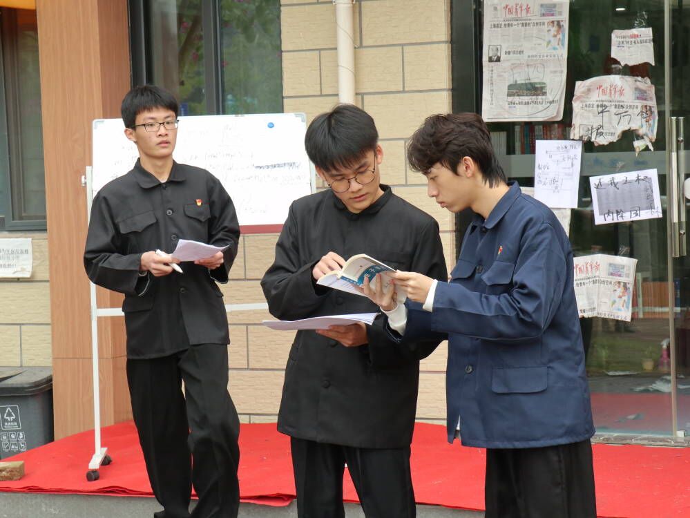 读书社在学校青年之家前厅开展《我的祖国我的党》的红色情景剧表演。“五四运动青年一代的新思想的启蒙”“南陈北李救国觉醒”“两弹一星功勋卓绝”“小岗村体制改革”“请党放心强国有我”等5个场景依次呈现,生动演绎了中国共产党的“四个历史时期”,讴歌了中国共产党人的使命担当。一幕幕历史场景在社团成员的倾情演绎中再次释放出蓬勃的生命力和感召力,让现场师生深刻感受到中国共产党人的团结伟大和同心筑梦,深刻感悟到中国共产党人的崇高理想和使命担当!