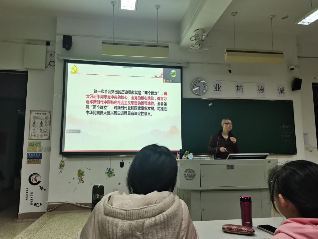 凛冬已至,万物藏冬。中国共产党第十九届中央委员会第六次全体会议于2021年11月8日至11日在北京召开,这是一场在重要历史关头召开的一次具有重大历史意义的会议,为了让青年学生更好地掌握党的十九届六中全会精神,2021年12月20日,马克思主义学院教师胡济林在教学楼109为习近平新时代中国特色社会主义思想读书社和21级部分学生作题为《解读党的十九届六中全会精神》专题讲座。