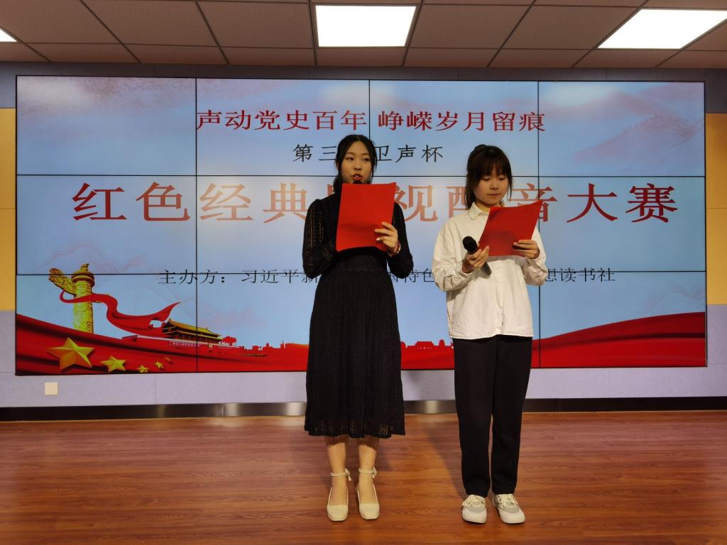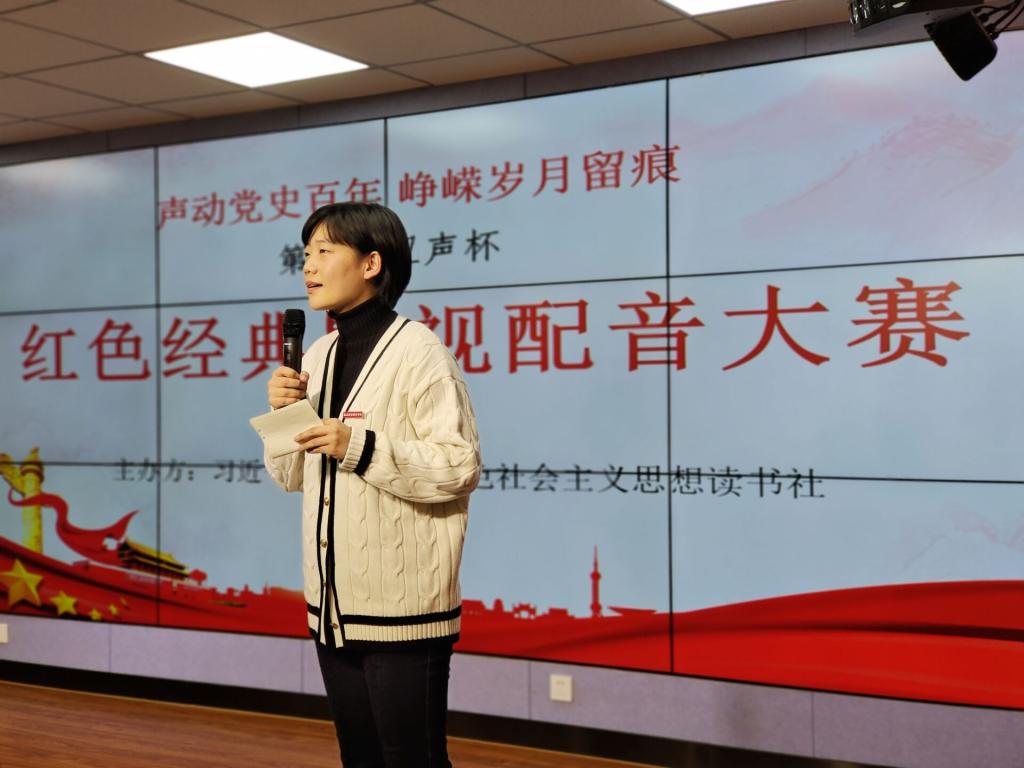 2021年12月20日,习近平新时代中国特色社会主义思想读书社在明湖青年之家举行第三届“卫声杯”红色经典影视片段配音决赛。本次大赛由马克思主义学院和习近平新时代中国特色社会主义思想读书社主办,马克思主义学院熊美兰、胡济林、郑冰、江洪和罗芸等指导老师,同决赛选手、现场观众共聚一堂,声承经典,让党史故事重现。
