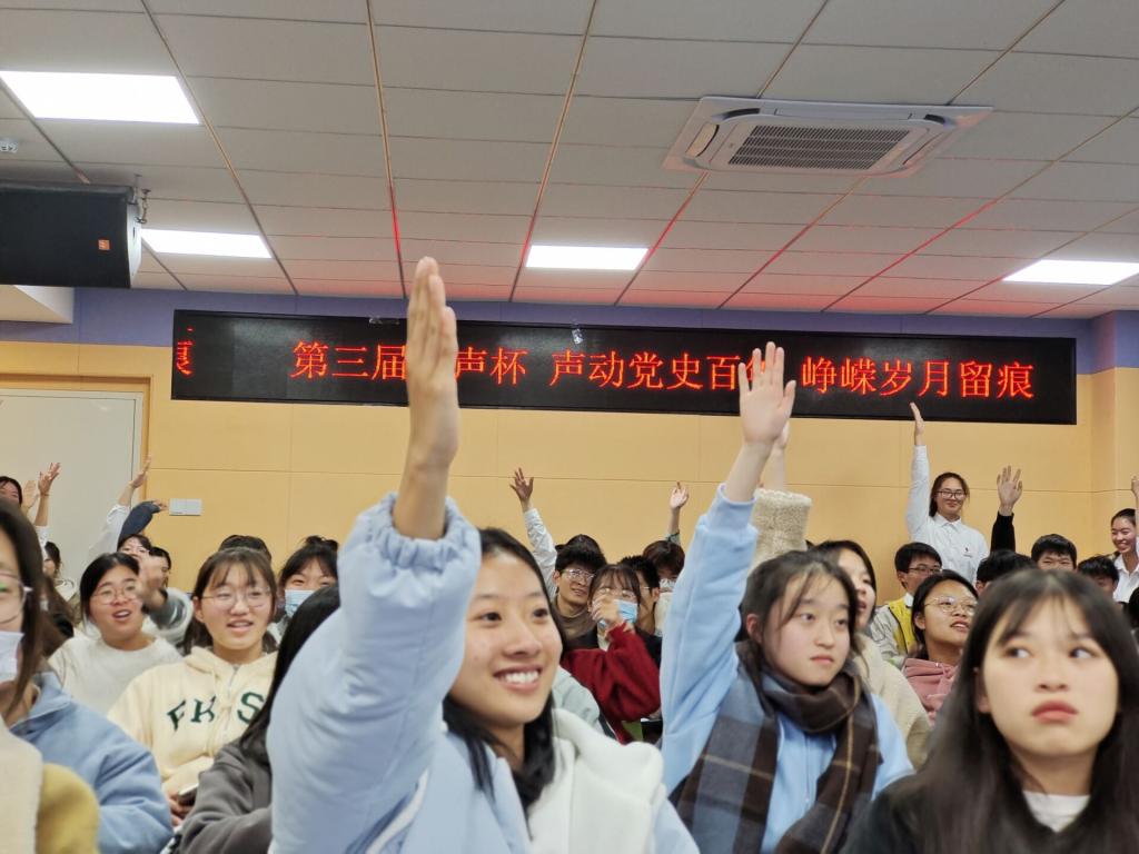 在情感和声音的交织震撼中,所有参赛选手将精心准备的配音作品一一展现。“那个黑暗的年代,看不到一点光亮,活着都艰难,为什么他们还要去舍生赴死。后来我知道了,他们就是想燃烧自己来当这唯一的光亮,照亮当时,惊醒世人。这光亮着,直到多年后的现在,我不用苟活着。”陈花、黄惠琳和张舒荣团队全情投入,声情并茂地演绎,深情地刻画影片中人物角色的形象,让全场观众沉浸在“最干净的灵魂”洗礼中,最终脱颖而出,摘得一等奖。比赛期间还穿插党史知识抢答,现场观众抢答热烈。