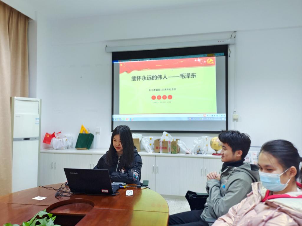 为了铭记光辉历史、缅怀一代伟人、传承红色基因,培养民族精神和爱国情怀,2021年12月26日,习近平新时代中国特色社会主义思想读书社原梦队在行政楼107会议室开展了“纪念毛泽东诞辰128周年”读书活动。原梦队指导老师罗芸及全体原梦队队员参加活动。