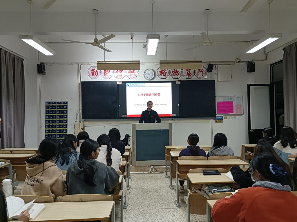 2021年12月29日,习近平新时代中国特色社会主义思想读书社致远队在教103开展《习近平用典》之《笃行篇》学习活动。本次活动由江洪老师主持并主讲,全体成员们按时参加了活动。