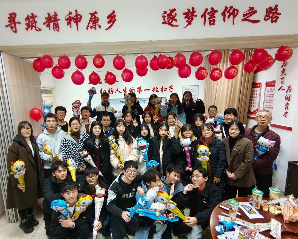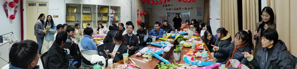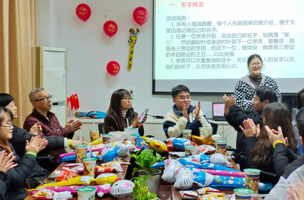为了增进交流,促进友谊,2021年12月30日,习近平新时代中国特色社会主义思想读书社(以下简称“读书社”)举办迎2022新年暨团建活动。熊美兰、胡济林、江洪、郑冰和罗芸等指导老师及读书社全体成员,在行政楼107齐聚一堂,欢度美好时光。