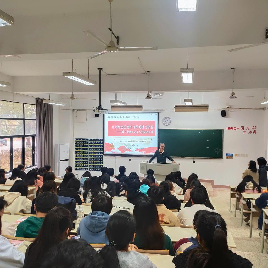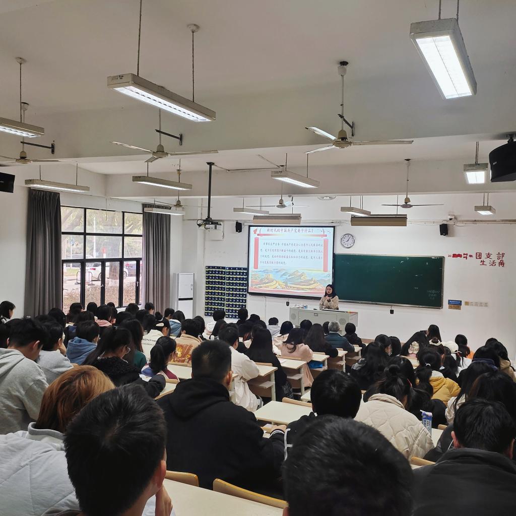2022年1月7日,习近平新时代中国特色社会主义思想读书社宣讲团在胡济林老师的组织下,到教学楼111为21药产301、302班开展“深刻领会党百年奋斗的历史经验”专题宣讲。