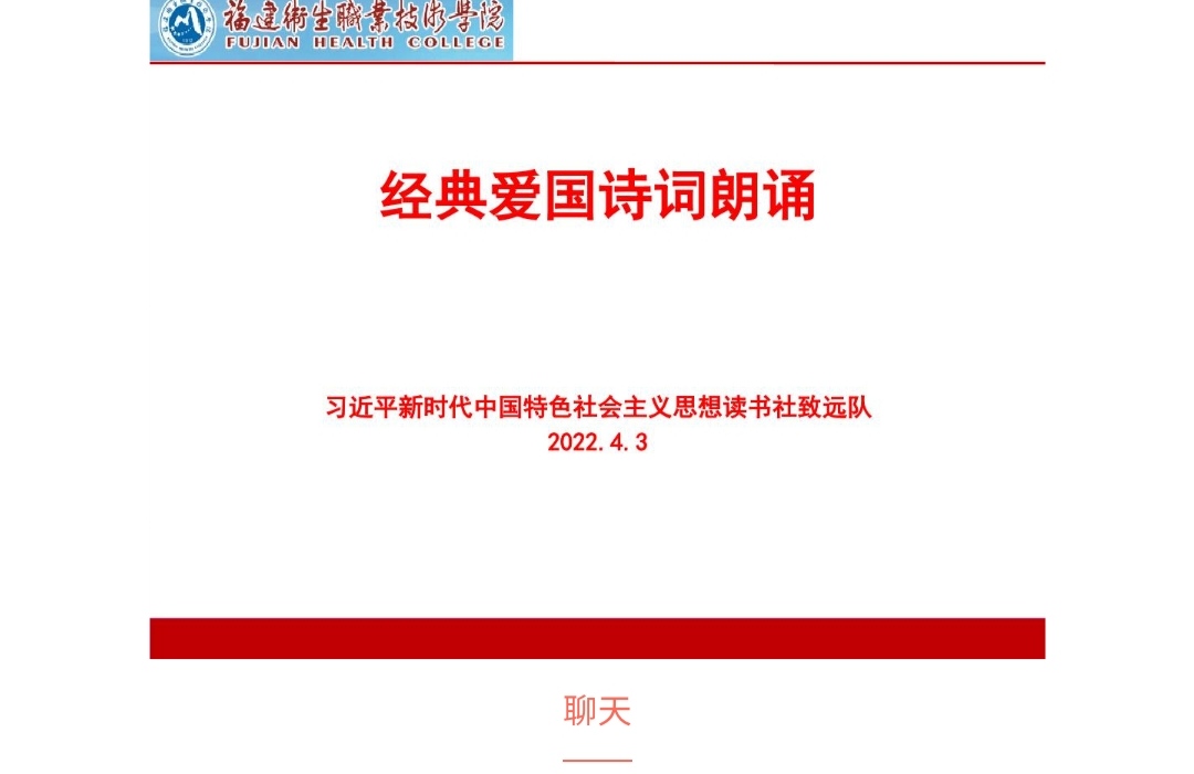 2022年4月3日晚,习近平新时代中国特色社会主义思想读书社“致远队”在指导老师江洪的组织下,在线上顺利开展了“经典爱国诗词朗诵”活动。