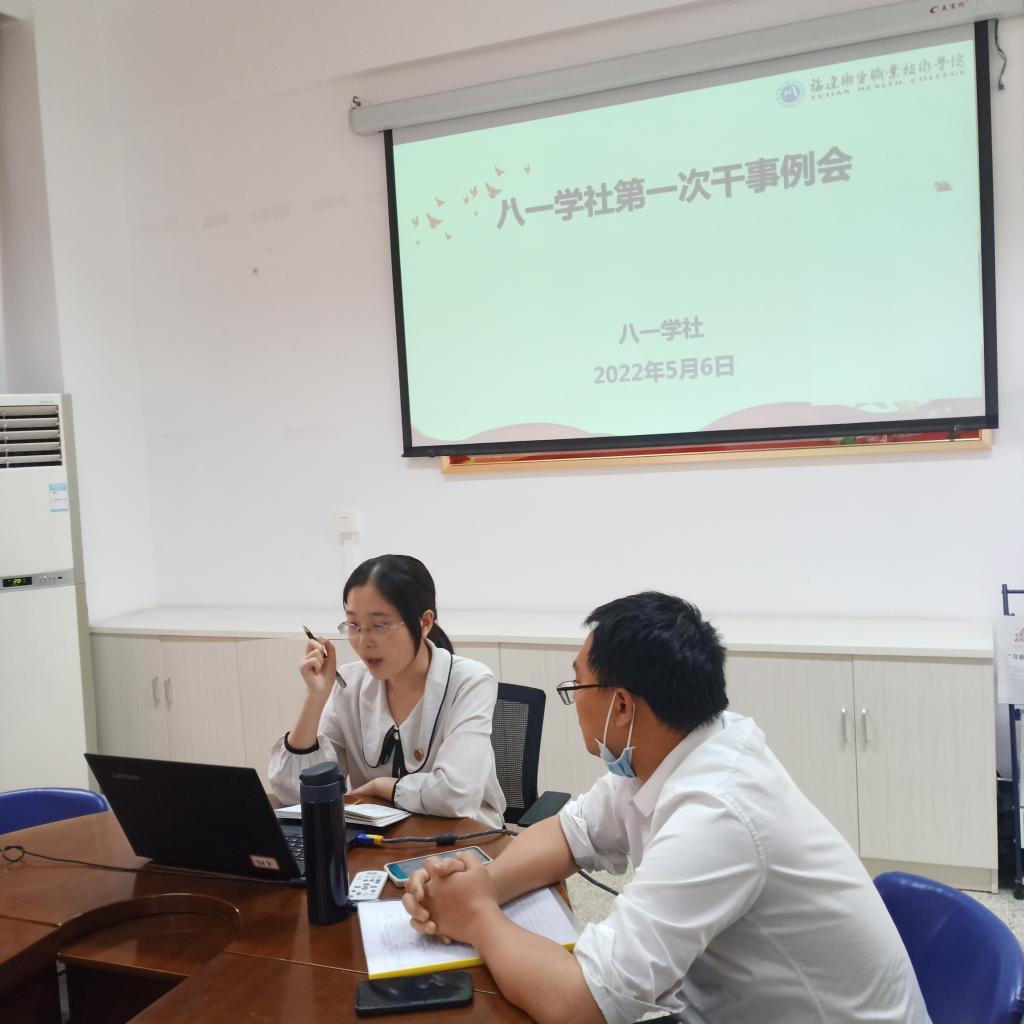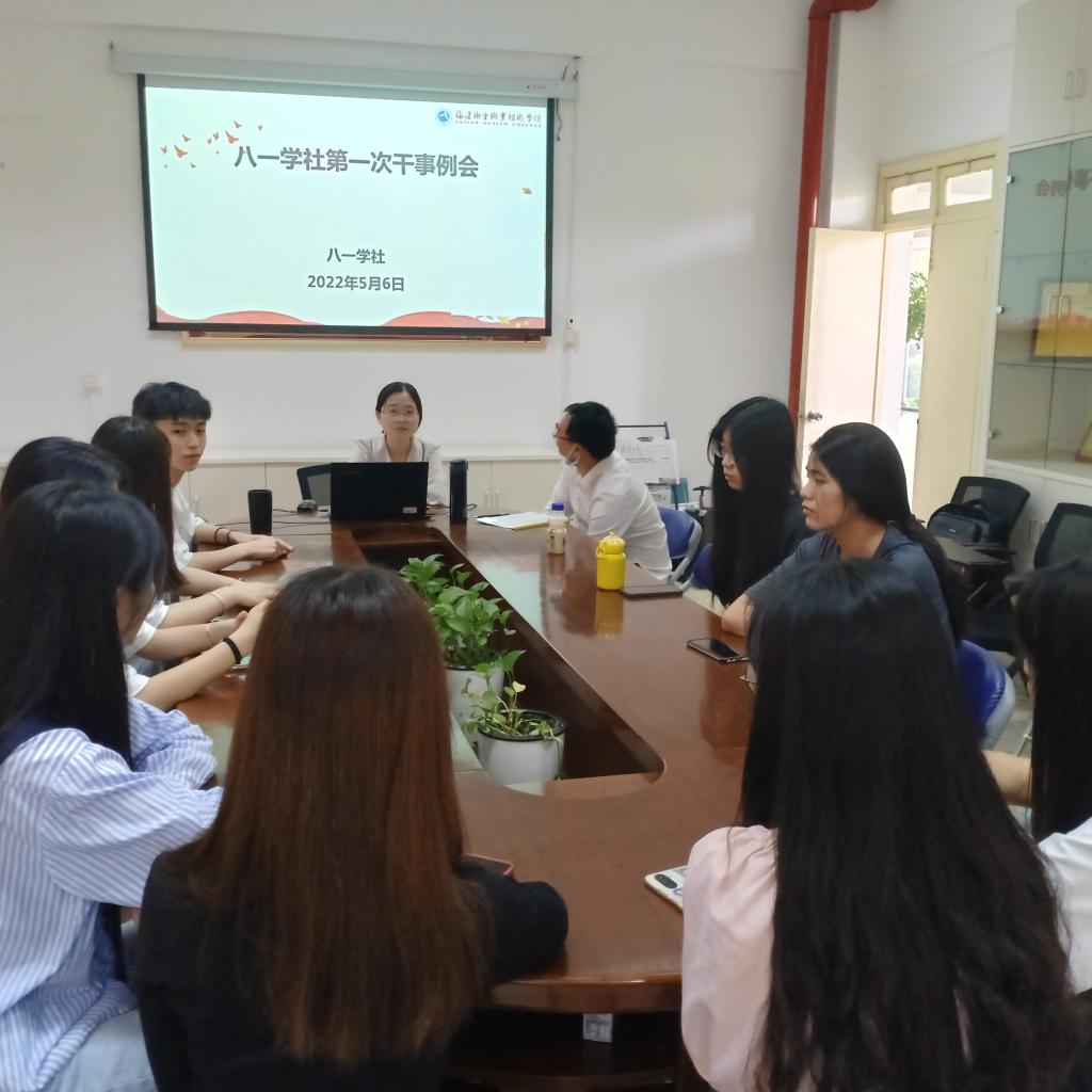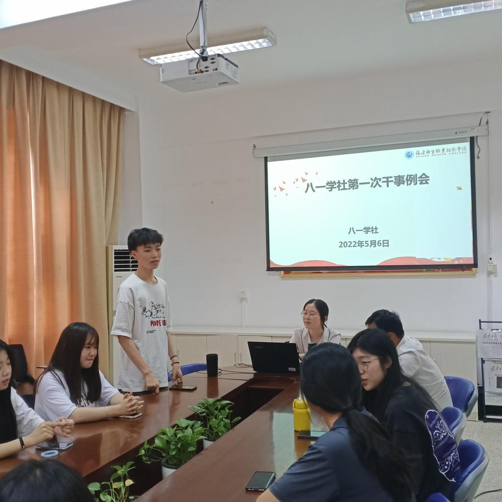 为提高八一学社工作效率,促进社团工作顺利开展,2022年5月6日在行政楼107召开八一学社第一次干事例会,会议由社团指导老师杨央主持,指导老师张崇飞和八一学社全体新晋干事参加了此次会议。