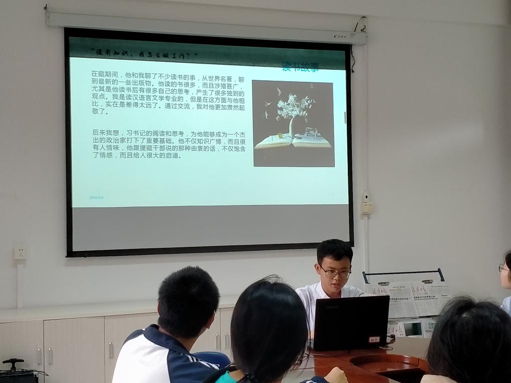 陈捷同学从人物简介、从闽进藏、平语近人、读书故事、援藏项目、联系惦记、工作政策这几个方面对这篇采访录进行了介绍,并选取了部分孙永明同志与习近平总书记的经典对话,以及孙永明同志对习近平总书记的评价与队员们进行分享,从对话中我们能感受到习近平总书记对待工作的认真严谨和对待同志、人民的友好可亲。在援藏工作上,习近平指出:“在高原上工作,最稀缺的是氧气,最宝贵的是精神。长期以来,一代又一代共产党员舍弃常人所拥有的、放弃常人所享受的,扎根雪域高原,矢志艰苦奋斗。广大党员、干部要发扬优良传统,不断为“老西藏精神”注入新的时代内涵。这也让在场的队员备受激励和鼓舞。
