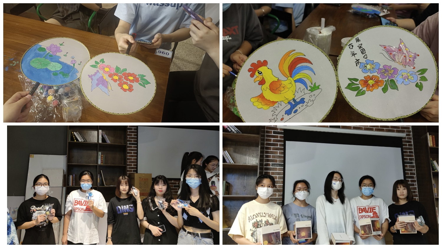 一番精彩的麦糕比赛结束后,就进入了画团扇环节。同学们发挥聪明才智,依据工作人员所提供的图画进行填色,填色完成后结合校庆进行提词,然后由工作人员评分,结合上个环节选出了分数最高的两个组别,颁发奖品,以资鼓励!