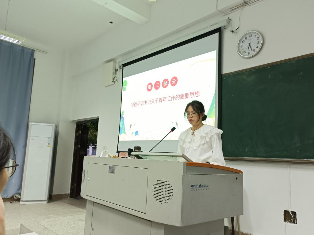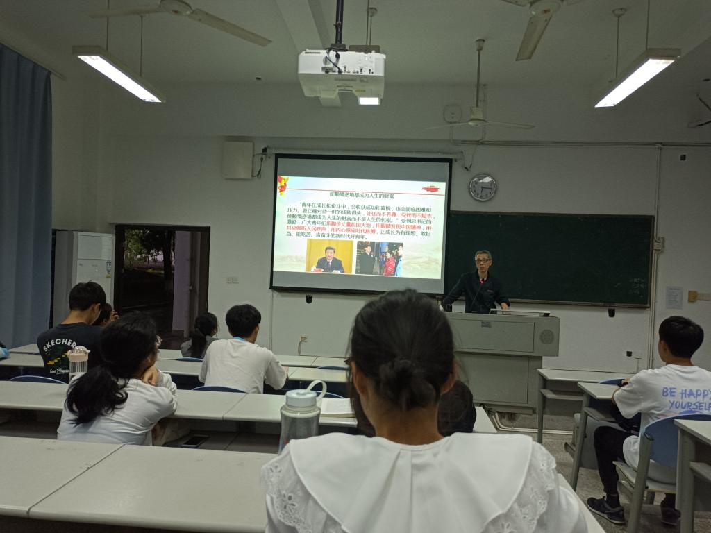同学们到达药学一阶教室签到后,由胡济林老师进行《书写无愧于时代的青春华章——习近平总书记关心青年成长》的专题报告,胡济林以解读的方式,从习近平总书记走近青年出发,阐述了习近平总书记常用亲身经历勉励青年、习近平同志关心青年面临的现实问题、习近平同志十分关心青年的精神世界、怎么样让顺境逆境成为人生的财富等五个内容。通过胡济林的介绍,大家更深刻体会到身为青年在奋斗中释放青春激情、追逐青春理想的人生价值,感悟到成就事业和梦想需要坚定的理想信念;沉下心来学,方能志存高远;弯下腰去做,脚踏实地才能务实不虚;不怕吃苦,在奋斗中苦练牛劲牛力。胡济林号召大家牢记习近平总书记的谆谆教诲,扎实练好基本功,把勤奋学习作为人生进步的重要阶梯。我们大学生要用脚步丈量祖国大地,用眼睛发现中国精神,用耳朵倾听人们呼声,用内心感应时代脉搏,做有理想有担当、能吃苦、肯奋斗的新时代好青年。