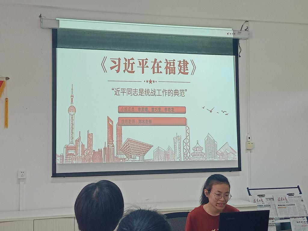 为更加深入学习贯彻习近平新时代中国特色社会主义思想,新思想读书社梦之队根据学期初的安排,于2022年5月30日下午在行政楼107进行《习近平在福建》之“习近平同志是统战工作的典范”篇目的交流学习。本次学习由梦之队指导老师郑冰主持,梦之队全体成员参加,由21护理314班李晨熹同学进行主汇报。