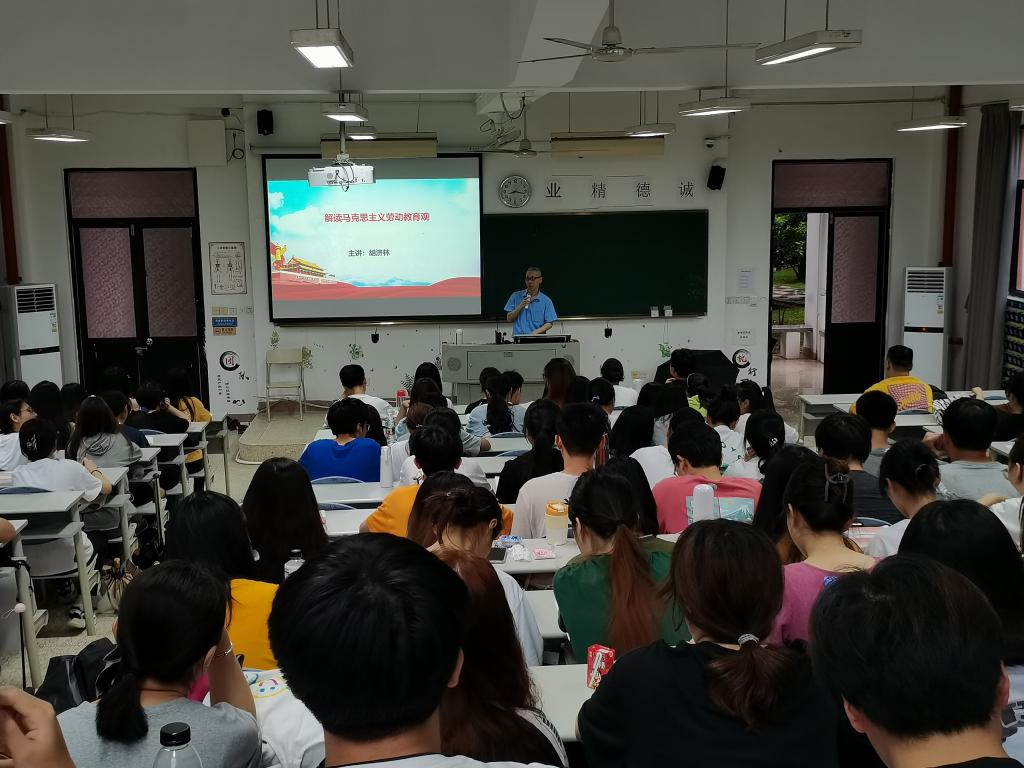 劳动光荣是人类的永恒,劳动伟大是最美的称颂。为了培养大学生的劳动观念,增强劳动纪律,2022年6月6日,马克思主义学院教师胡济林在教学楼109为18卫管501、药经管501、药品501学生举行“解读马克思主义劳动教育观”专题宣讲。
