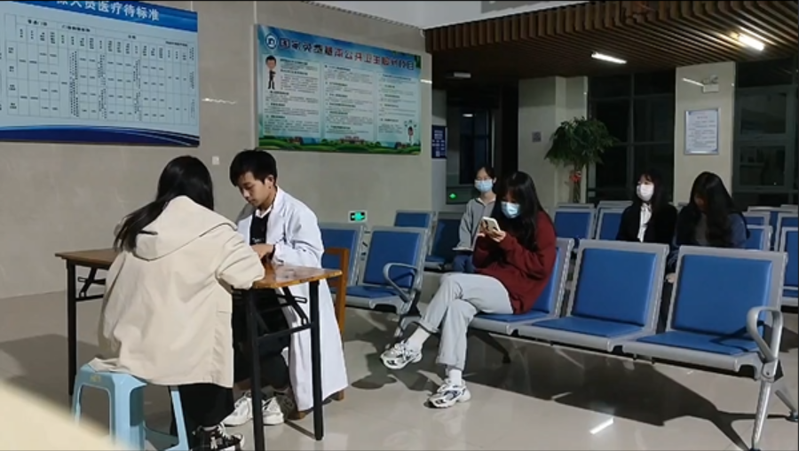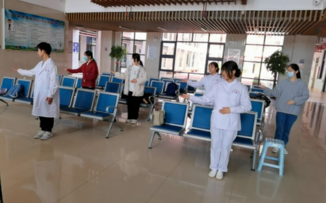 江洪还组织同学们开展了医学礼仪训练。首先由3名成员情景模拟某社区医院某医生、护士的诊疗、服务过程。随后,其他观摩成员通过观摩,寻找在角色扮演中医生、护士出现的不合医学礼仪的行为,并运用自己所学的医学礼仪知识纠正错误。最后,同学们展示了语言礼仪、穿戴礼仪、坐姿、站姿、蹲姿等五个方面的基本的医学礼仪。