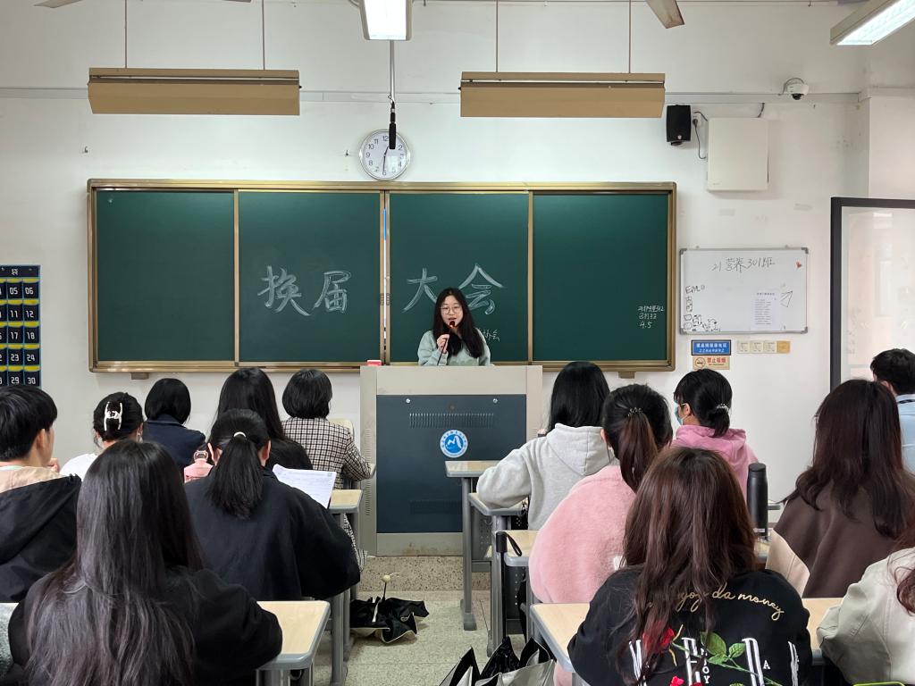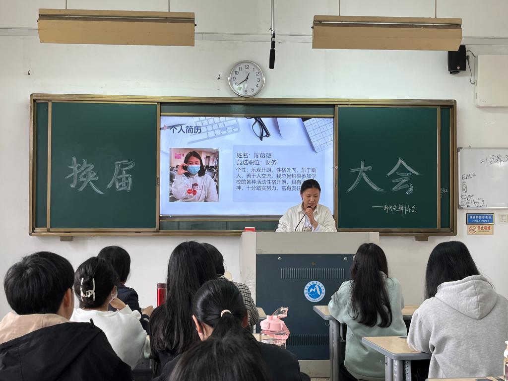 2023年4月6日,时代先锋协会社团换届大会在教学楼201教室顺利举行。本次会议采取了线上线下同时进行的方式。出席本次会议的有社团指导老师丁爱芝、陈洪月、社团干事、换届竞选人员以及各社团代表。会议由社长邓依婷主持。
