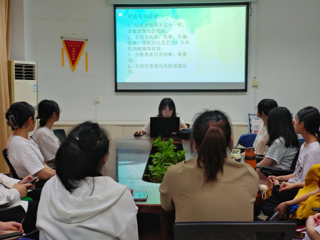 在健康知识宣讲环节,22助产303班蔡湘怡、22口腔303班冯淑晴、22口腔303班黄璇同学分别以进行预防甲流、预防中暑、蛇咬伤的处理等为主题展开宣讲。