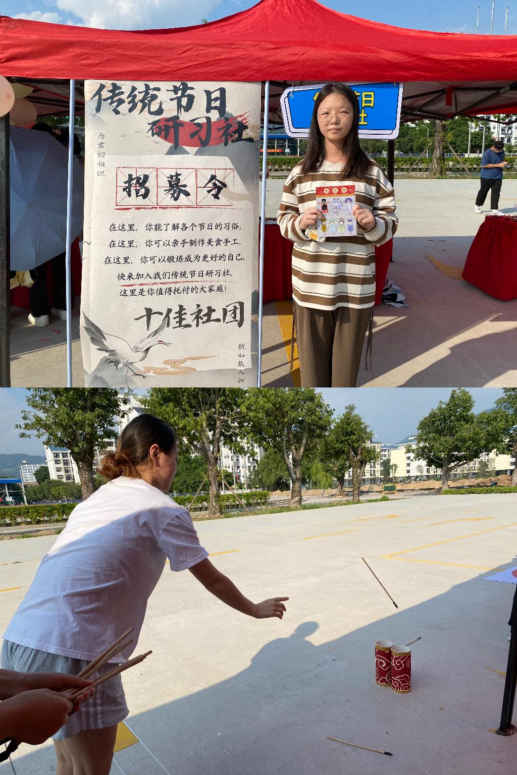 2023年10月15日,传统节日研习社成功举办了一年一度的“游园会”暨纳新活动。在游园会活动中,各个社团各展所长,嗨翻全场的表演节目,各具特色的社团小游戏,令人目不暇接。
