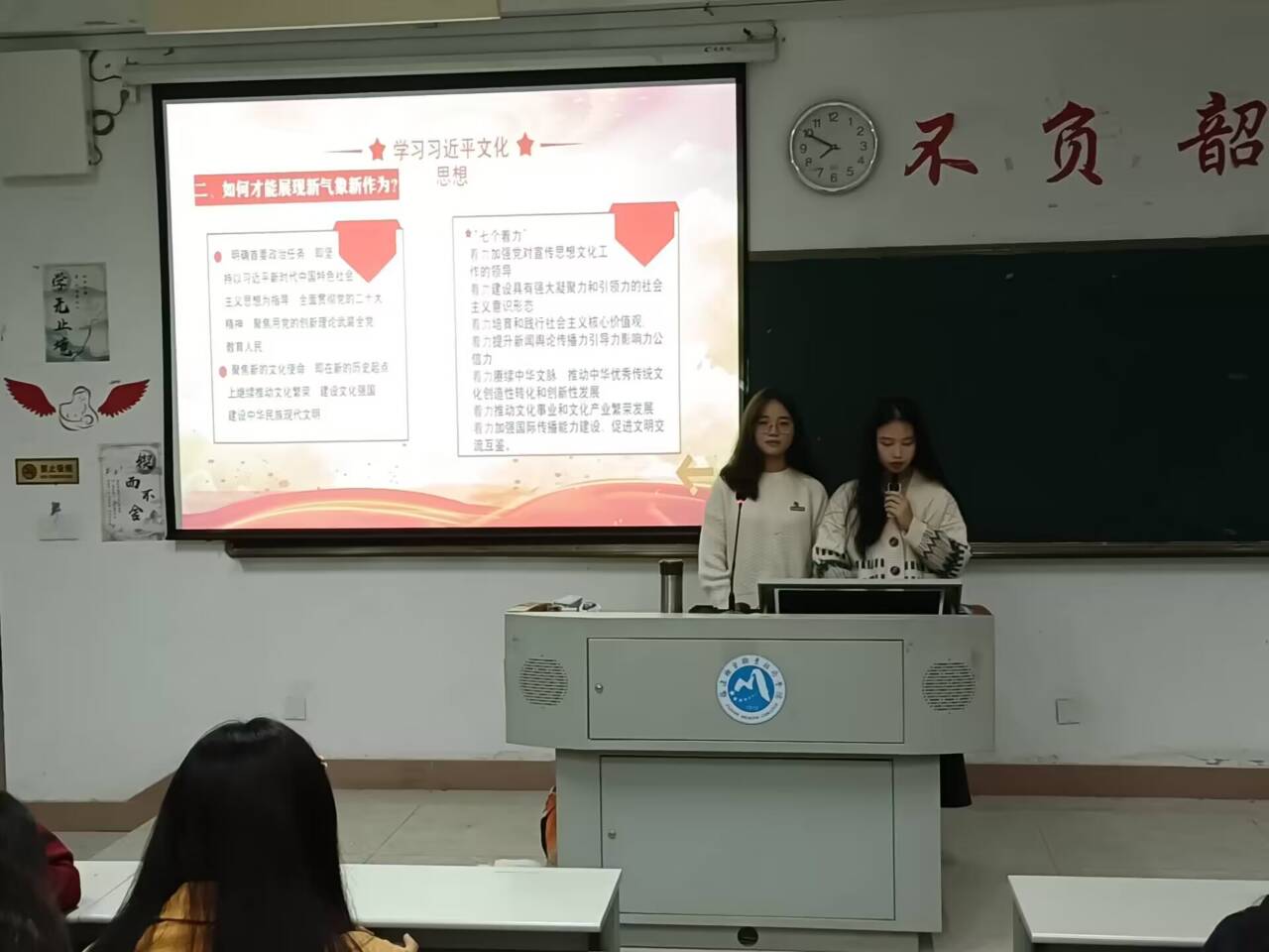 党的十八大以来,习近平总书记把宣传思想文化工作摆在治国理政的重要位置,对文化传承发展等各个领域,进行统筹谋划、分类指导、部署推进,推动宣传思想文化工作高质量发展。2023年11月27日,习近平新时代中国特色社会主义思想读书社宣讲团成员在胡济林老师的组织下,到护理一阶同学们开展线下宣讲交流。