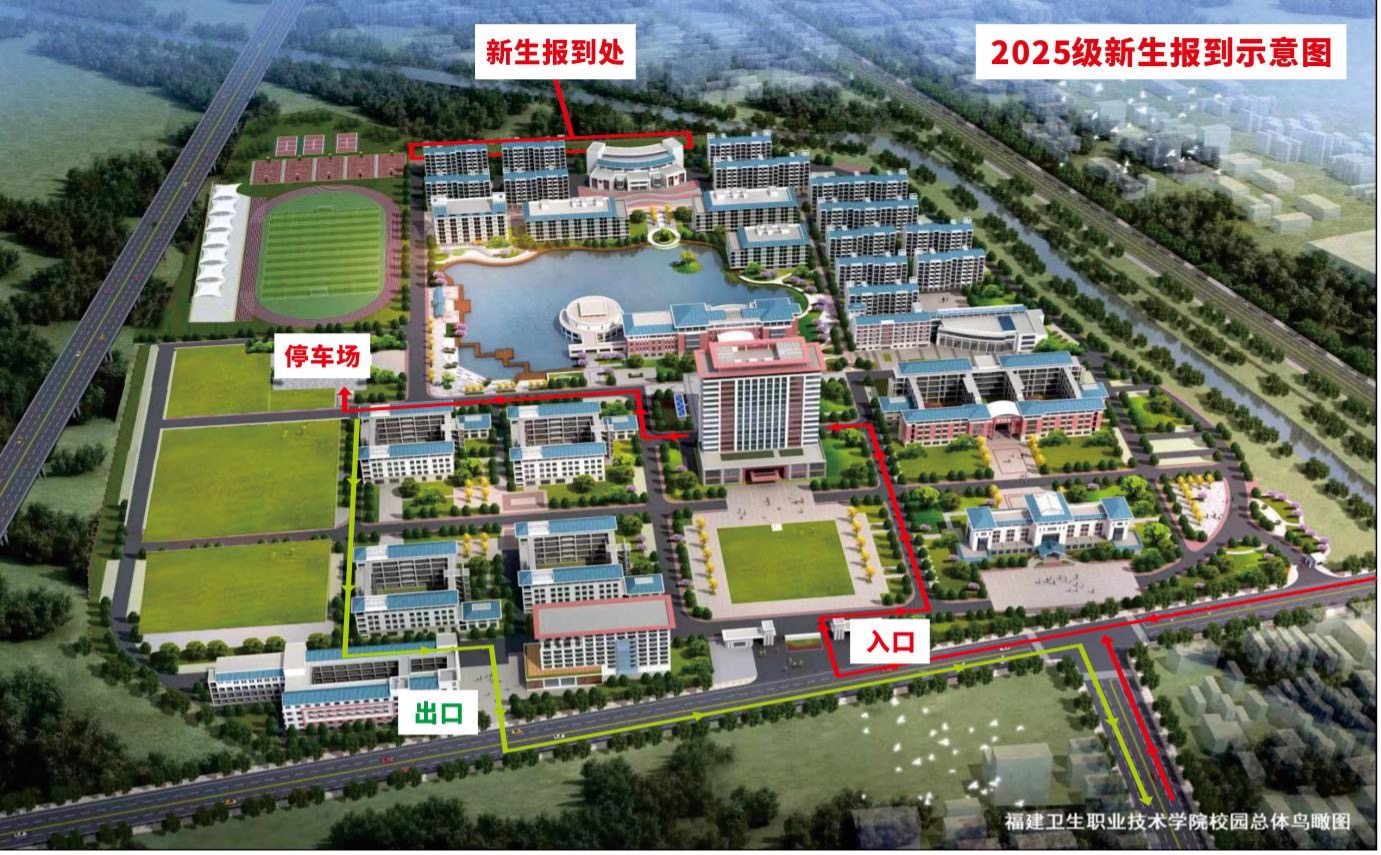 按 2025级新生报到示意图行驶,停至规定区域,离校走指定路线 |
