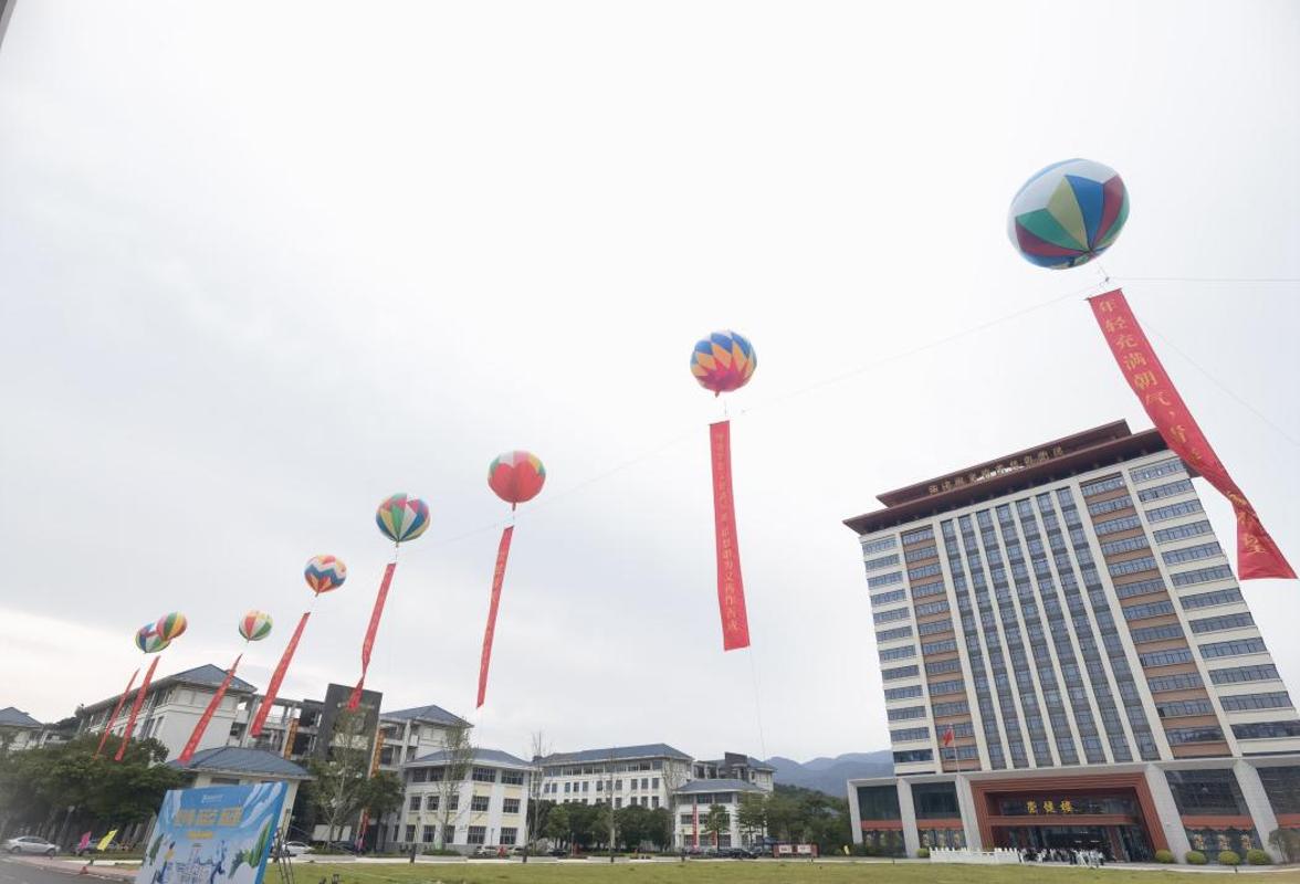 校园的道路两旁,彩旗迎风飘扬,五颜六色的彩旗串成了一道亮丽的风景线。花圃里,园丁们精心培育的鲜花竞相绽放,散发着阵阵清香,为校园增添了几分生机与活力。这里是新同学们挥洒汗水、释放活力的地方,每一寸土地都将留下你们成长的足迹。