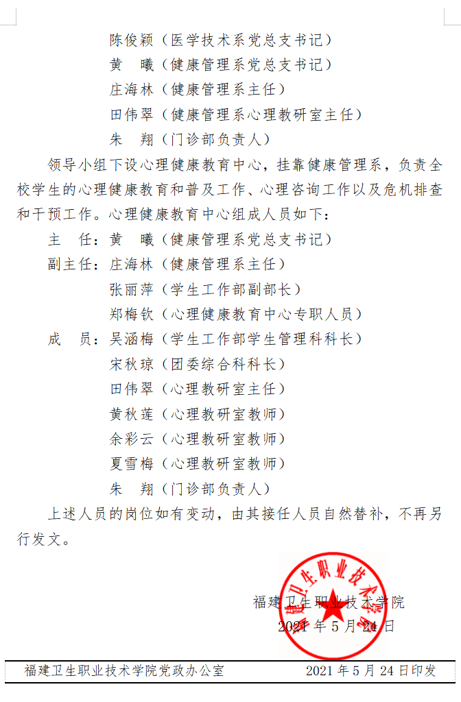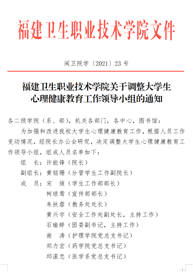 下一篇:福建卫生职业技术学院心理健康教育中心工作分工办法