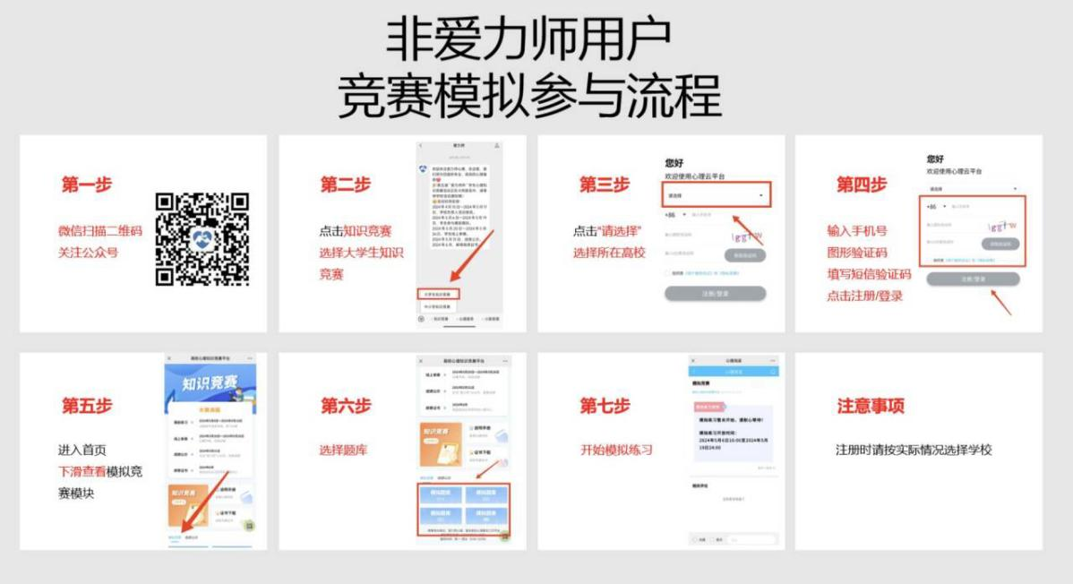 1.模拟竞赛开放期间,参赛学生可关注微信公众号“毫末高校心理委员工作平台”。