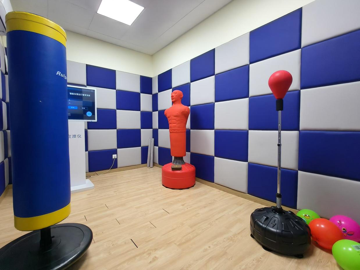 (7)情绪宣泄室配备了硅胶人形拳击沙袋、立式宣泄球、宣泄柱和智能击打宣泄仪等设备,为来访者提供合理的情绪释放空间。