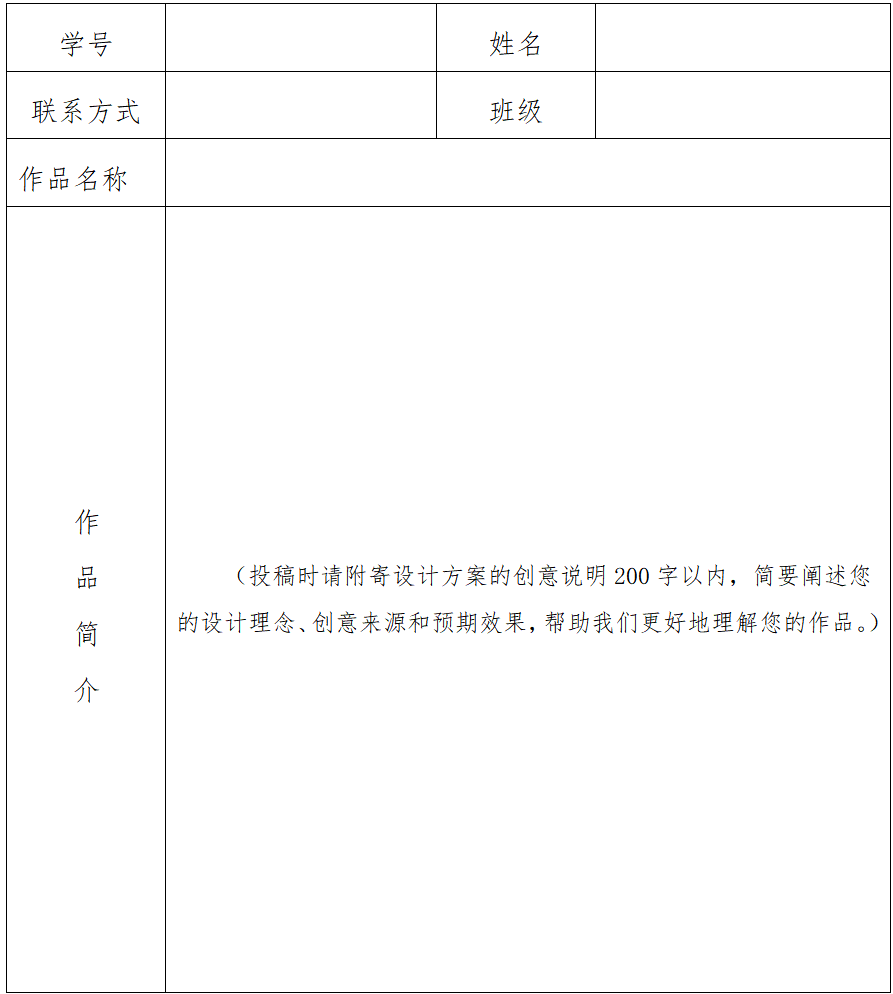 3.作品须是原创,本表一式一份,随作品一同上交。
