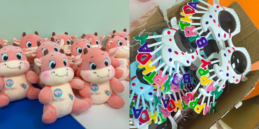 每组出一个人说一个自己做过,别人都没做过的事情或技能,若这个事情或技能已经有人做过,说的人接受惩罚。说的事情或做的技能为别人没有的,加一分,最后统计分数高的小组获胜。惩罚:表演才艺、唱歌、跳舞、绕口令、说相声(仅限单口)等。获胜肯定有奖励呀,看到那些可爱的玩偶和眼镜了嘛!可爱吧!