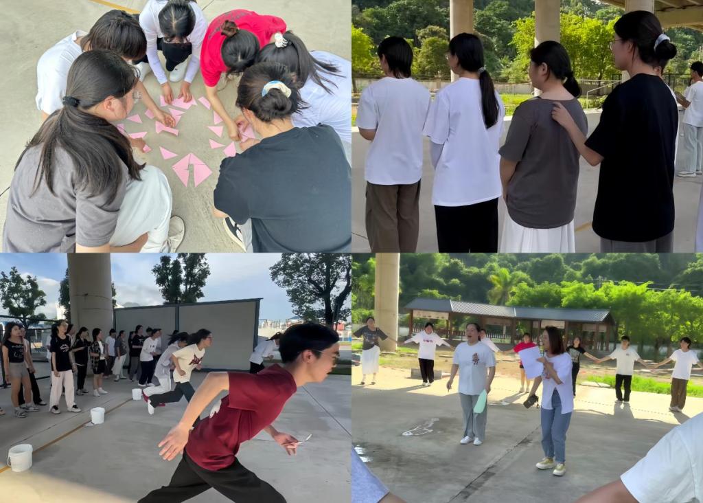活动中,“拼图挑战”环节培养了同学们的换位思考能力;“数字传递”游戏锻炼了同学们的肢体表达能力;“运水关卡”则展现了团队信任的重要性。最后,活动在充满活力的“兔子舞”中落下帷幕。