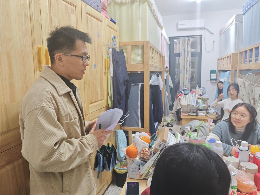 “最近气温变化大,要注意添衣保暖,宿舍常通风。”每走进一间宿舍,学院领导都亲切询问同学们的日常生活与学习情况。检查小组重点关注用电安全,对违规电器进行排查,同时向同学们普及安全知识。